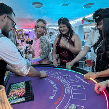 Our Fun Casino is perfect for Every Event: Whether it’s a wedding, corporate event, charity fundraiser, or private party. Enjoy the excitement of Blackjack, Roulette, and Poker without the high stakes! We create a safe, fun, and social environment where everyone can join in.