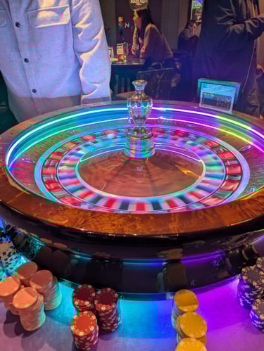 Customizable Packages: We offer flexible packages to fit your event’s needs, whether you want a full glamour setup or just one table. Plus lots of exciting add-ons like custom chips, fun money or Vegas Décor.