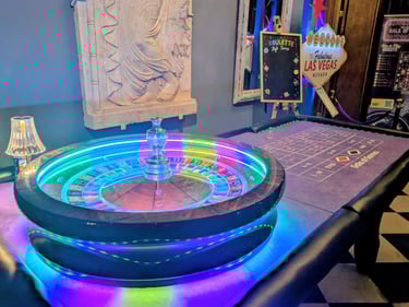 Authentic Casino Experience: Enjoy the thrill of your own little Las Vegas right at your venue with our glamorous Blackjack and Roulette that light up! (Battery operated and hassle free!)